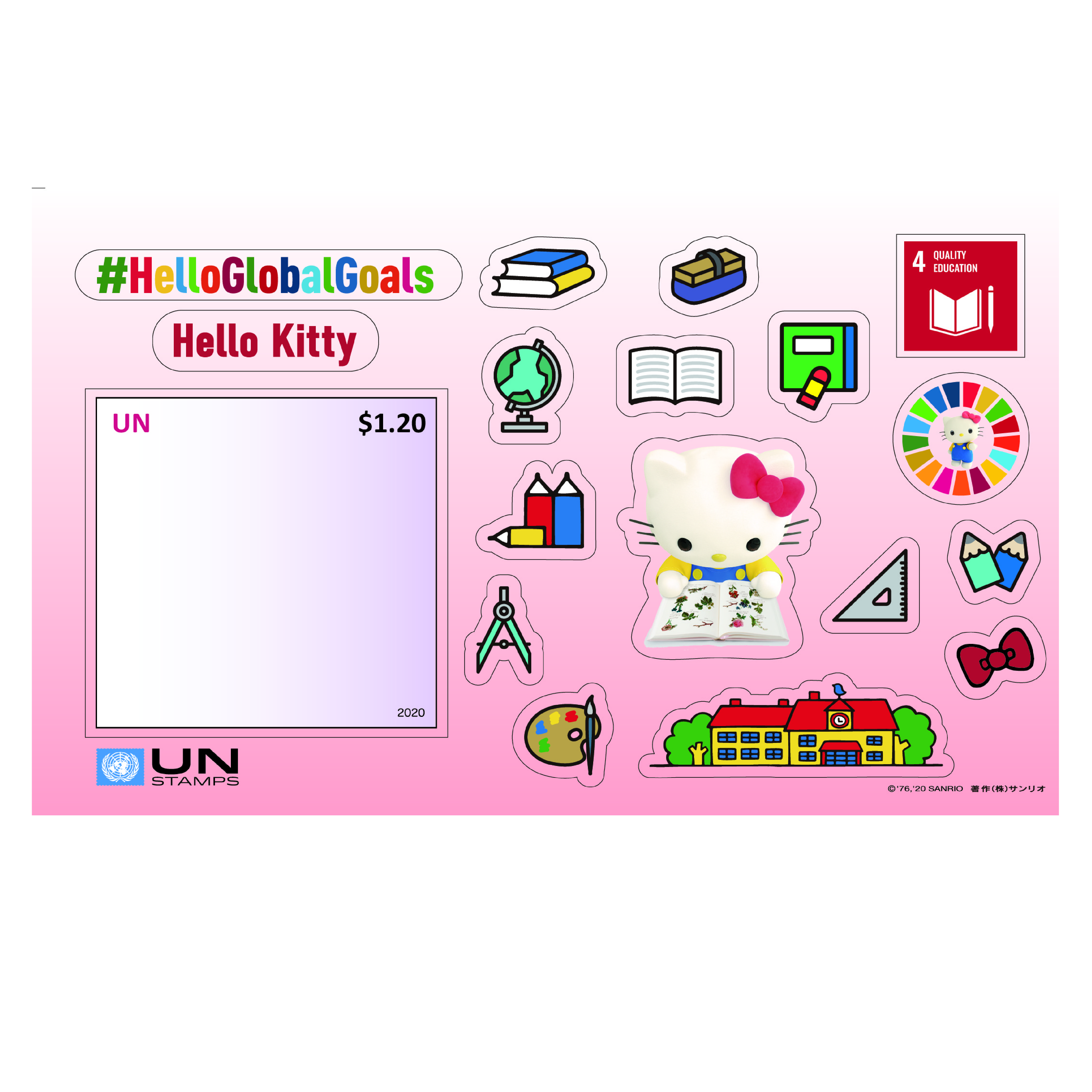 El 19 de marzo de 2020, la APNU emitirá un juego de seis minipliegos dedicados a Hello Kitty y los Objetivos de Desarrollo Sostenible. Los sellos auto-adhesivos están en blanco con varios elementos de Hello Kitty en la pestaña, que se pueden incorporar en los sellos, creando sus propios diseños personales.