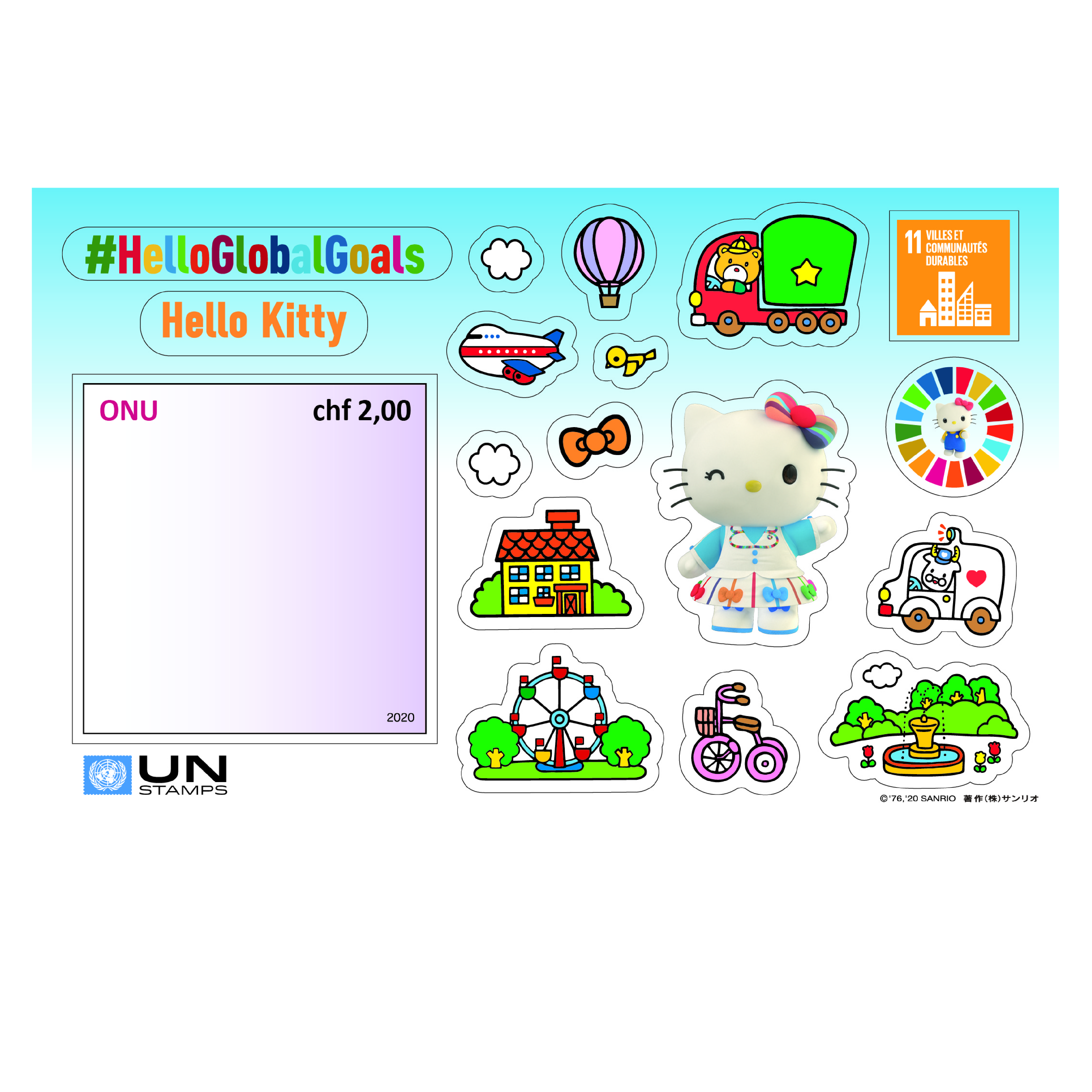 promuovere gli Obiettivi per lo Sviluppo Sostenibile (SDG). Grazie a questa collaborazione, Hello Kitty mette in evidenza sei dei diciassette SDG, mediante una nuova serie globale di video #HelloGlobalGoals sul canale YouTube di Hello Kitty.