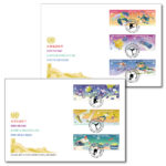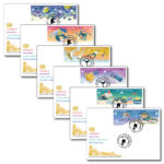 This is the first time that UNPA has issued stamps for the Olympic Winter Games. The stamps feature Hockey (US$ 0.58); Snowboarding (US$ 1.30); Figure Skating (CHF 1,10); Bobsleigh (CHF 2,00); Curling (€ 0,85) and Alpine Skiing (€ 1,80).