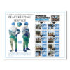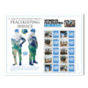 The sheet is composed of ten US$ 1.20 denominated stamps featuring images of UN Peacekeeping services around the world. The tabs of the stamps have the United Nations logo and may be personalized.